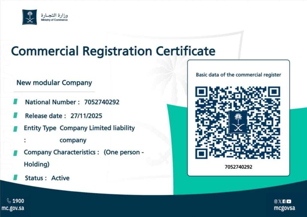 Saudi Arabia continues to strengthen its position as one of the most attractive destinations for investment and business growth in the Middle East. In this context, newmodular Company has officially achieved a major milestone with the successful issuance of its Saudi Commercial Registration (CR), marking the formal launch of its business operations in the Kingdom.